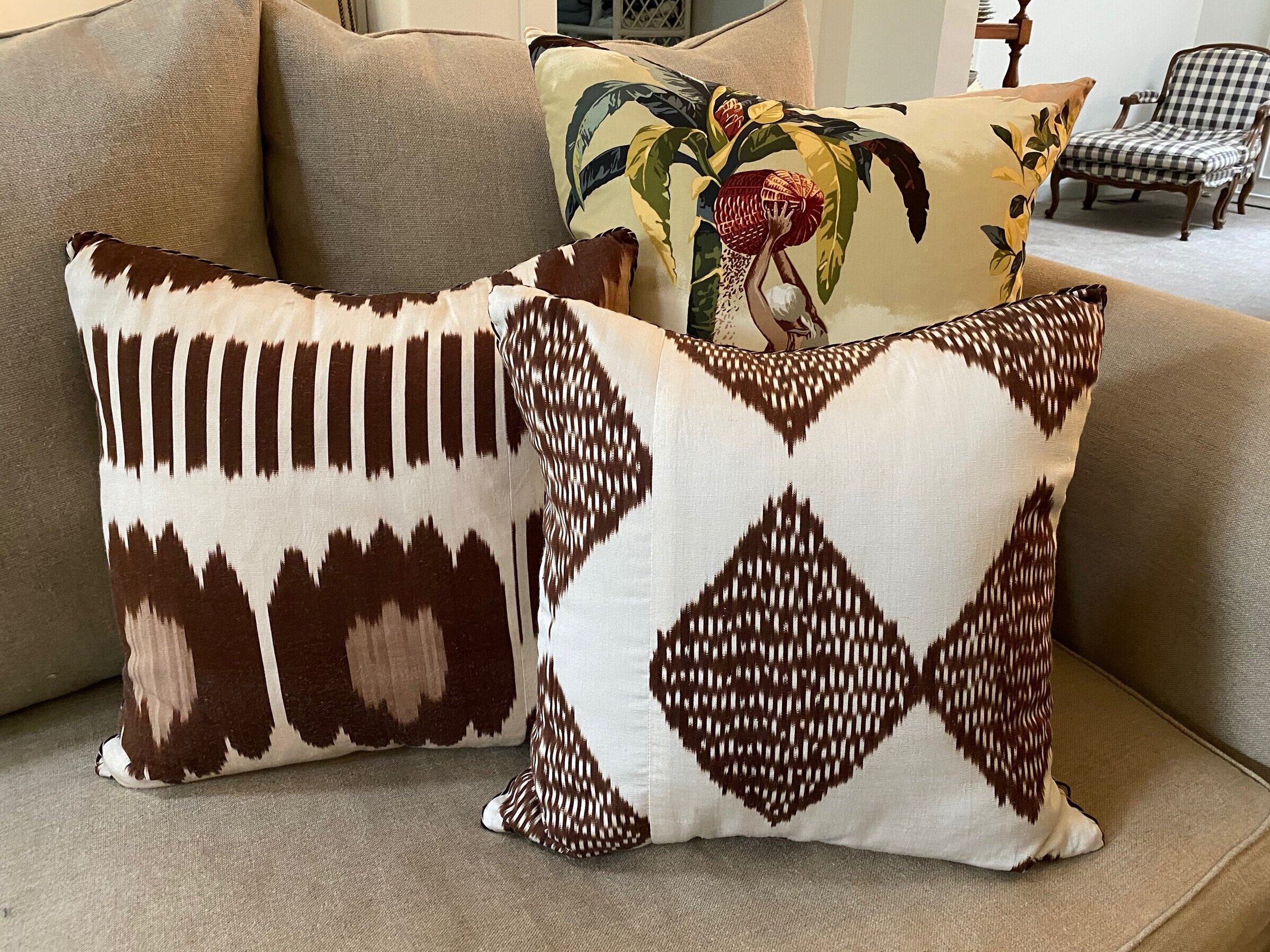Categories: All Art Accessories Cushions Lighting Furniture Made to Order Oak Furniture All / Cushions Nine Muses Charman Stripe Cushion $250.00 Nine Muses Patch Cushion $250.00 Flying Fish Cushion $155.00 Le Zebre Cushion $200.00 Chelsea Textiles Palm Tree and Monkey Hand Embroidered Cushion $280.00 Nine Muses Animal Olive Cushion $240.00 Walter G Lyon Cushion $155.00 Walter G Kumo Tabacco Cushion $155.00 Walter G Khotan Rust Cushion $139.00 Walter G Cefalu Cushion $128.00 Raoul Squiggle Linen Cushion with Contrast Piping - Chocolate $250.00 Madeline Weinrib Silk Ikat Cushion - Chocolate $250.00 Black and White Silk Ikat Cushion $250.00