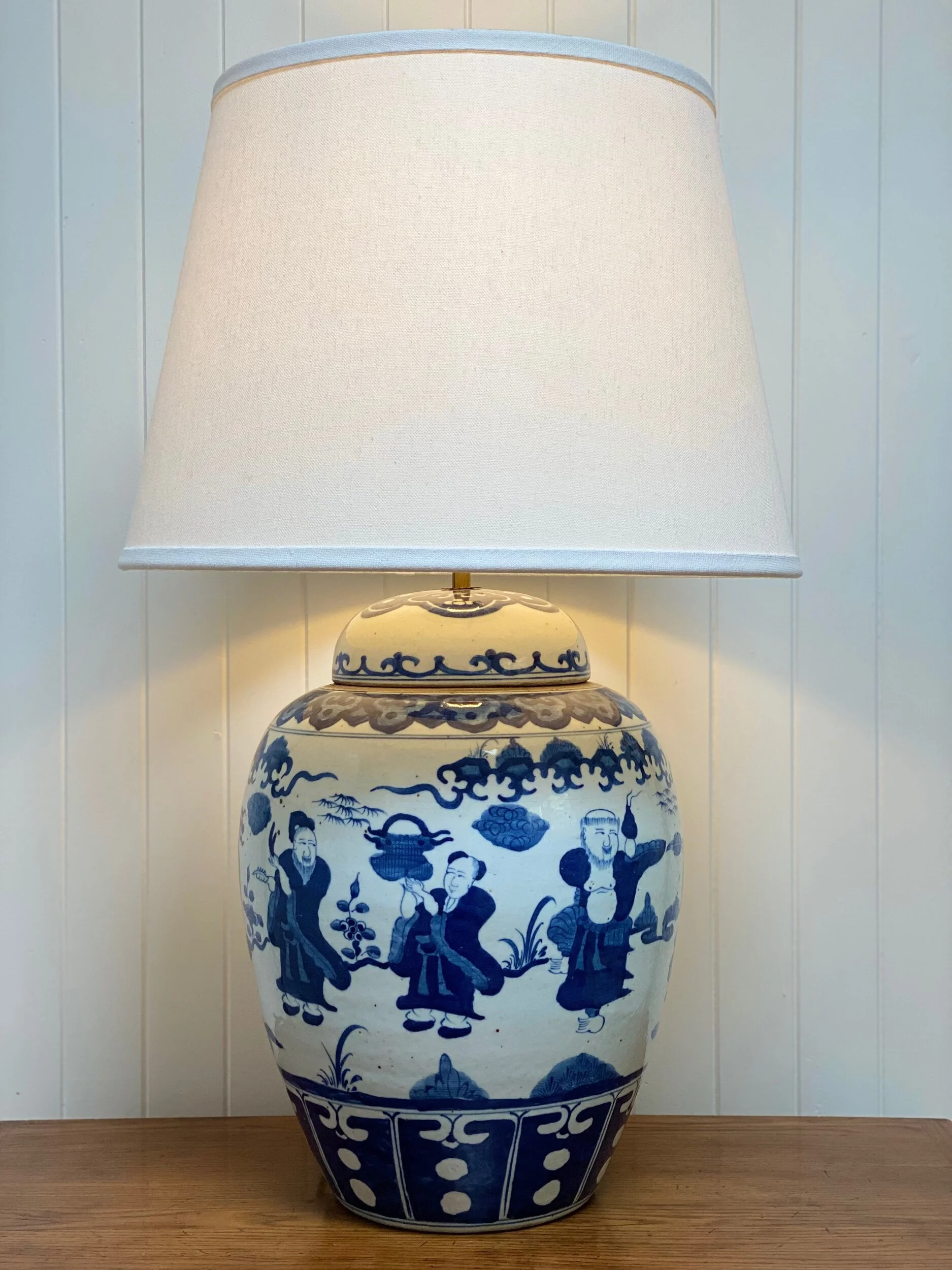 Products › Cloudmen Blue and White Ginger Jar Lamp Base with White Linen Shade Image 1 of 1 Cloudmen Blue and White Ginger Jar Lamp Base with White Linen Shade $595.00 75cm overall height x 46cm D2 availableSOLD Add To Cart Added! 75cm overall height x 46cm D2 availableSOLD